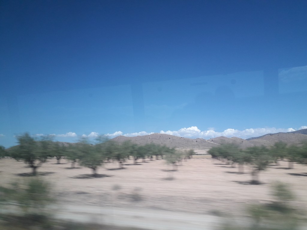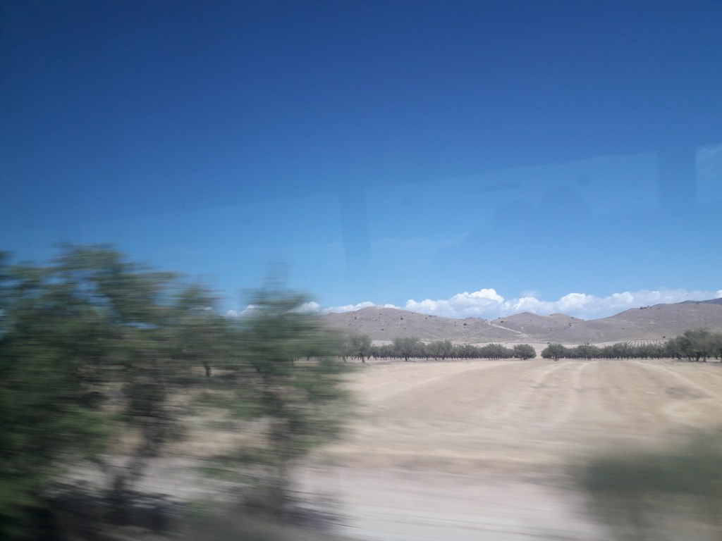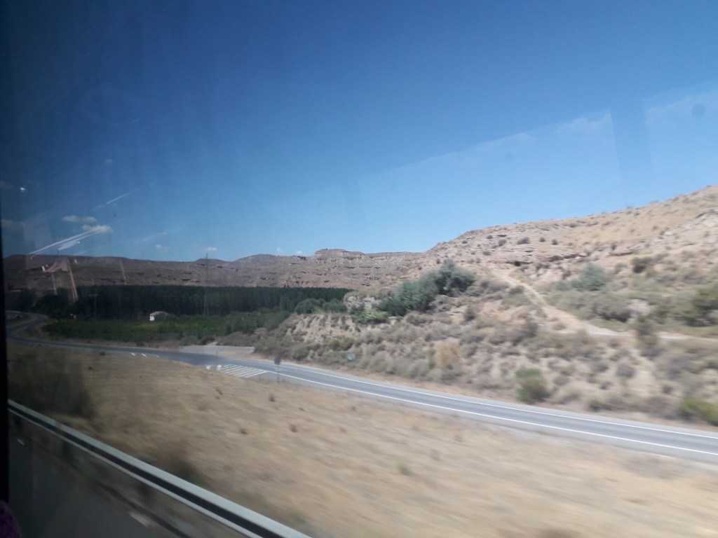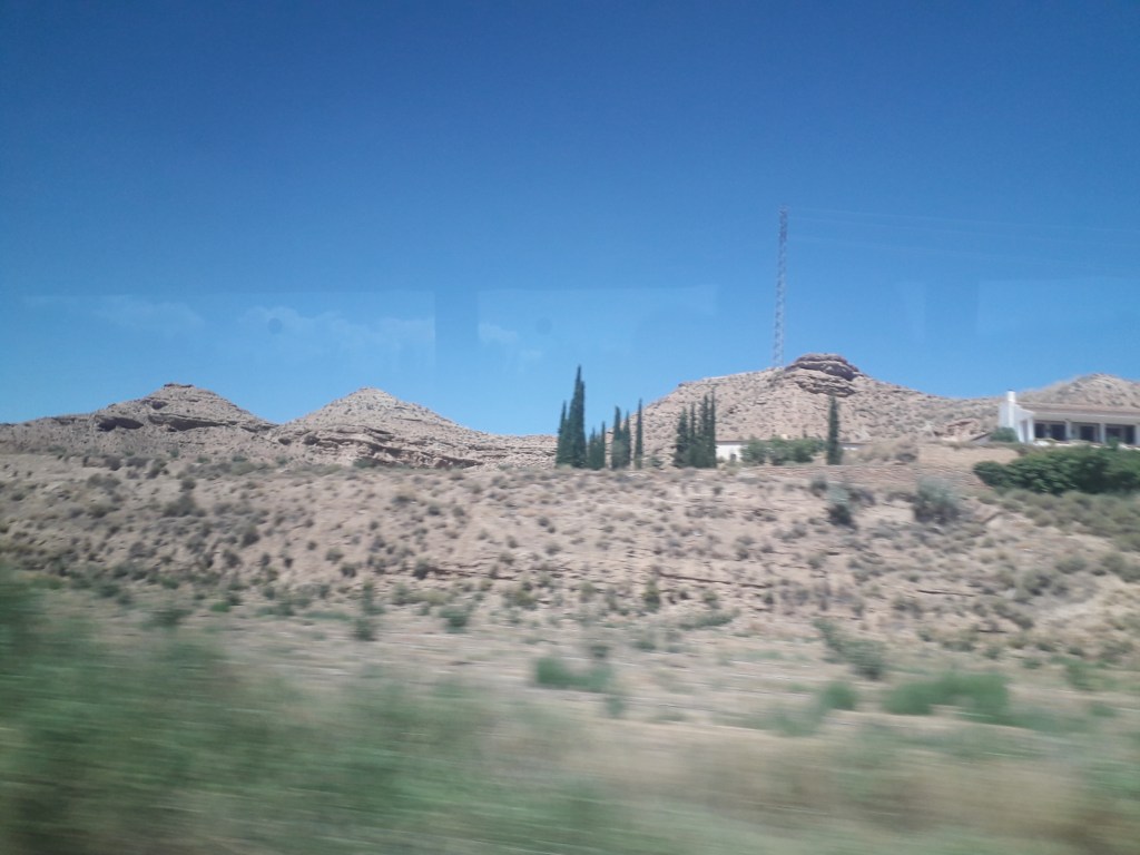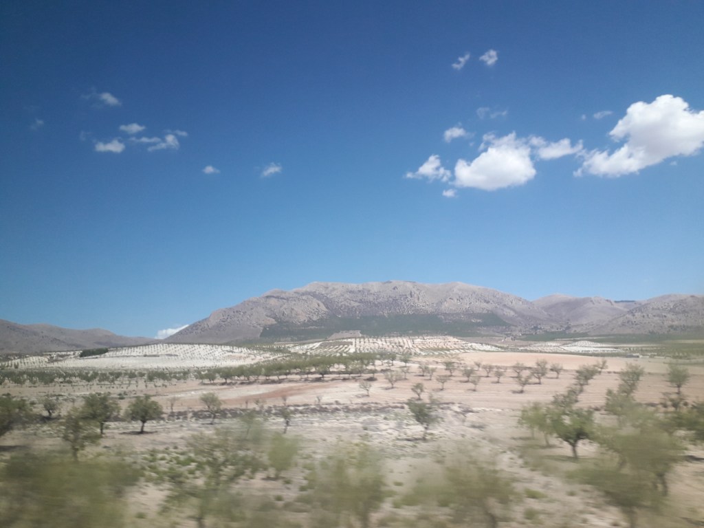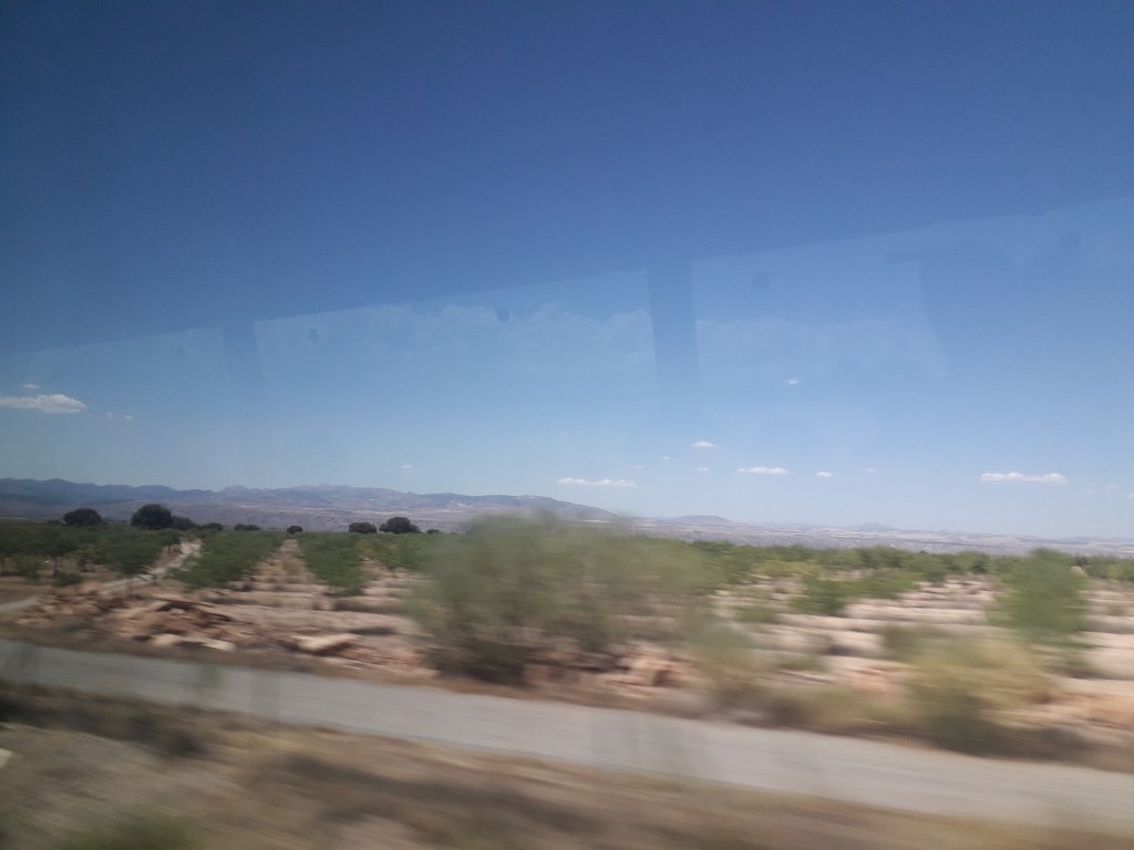 Lors du trajet vers Grenade, j’ai pris quelques clichés de la fenêtre du car. 🚃 On y voit notamment des oliveraies. Ces paysages se situent pour la plupart dans la province d’Almería :