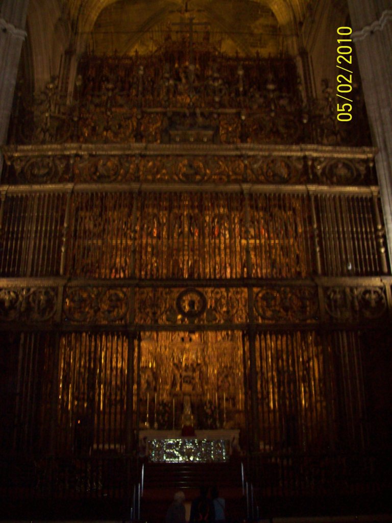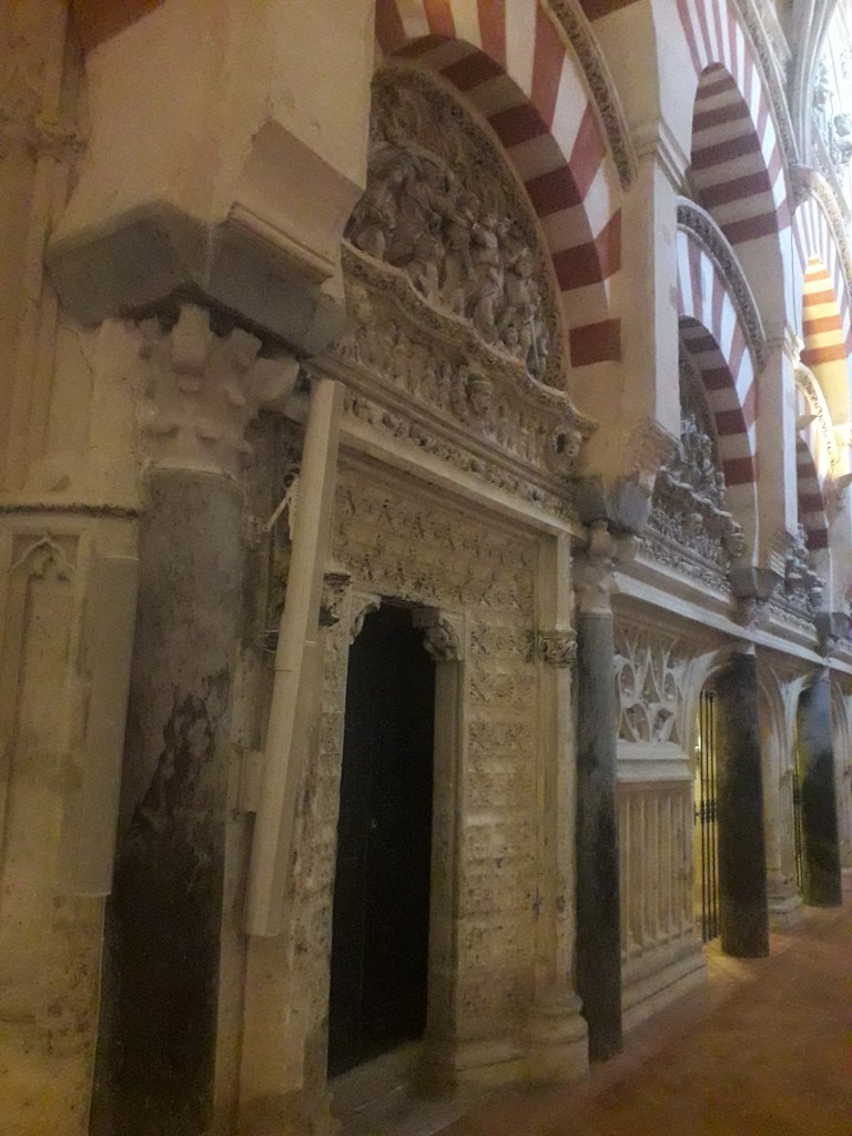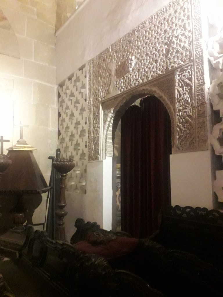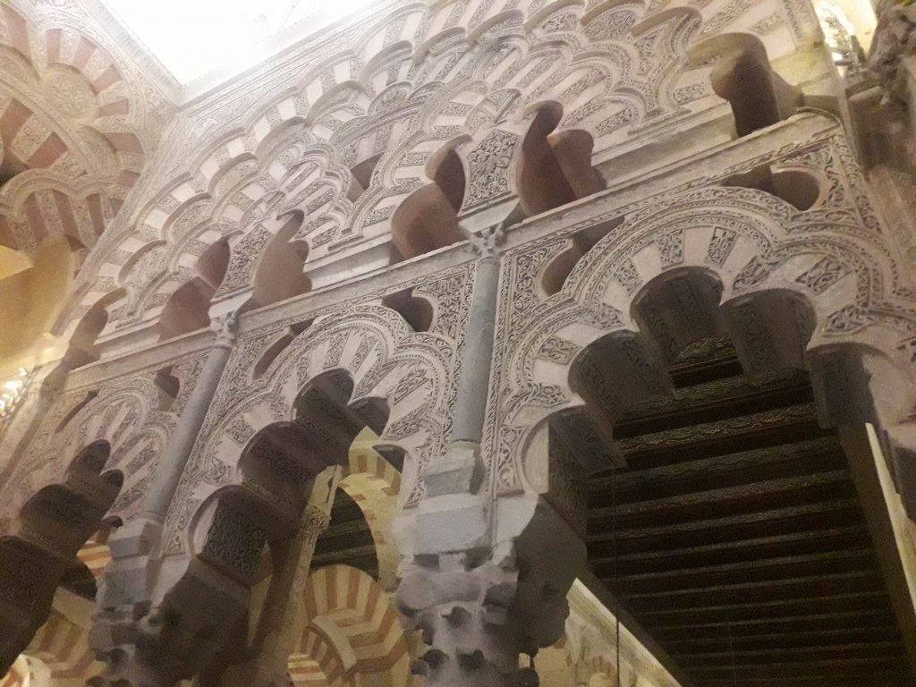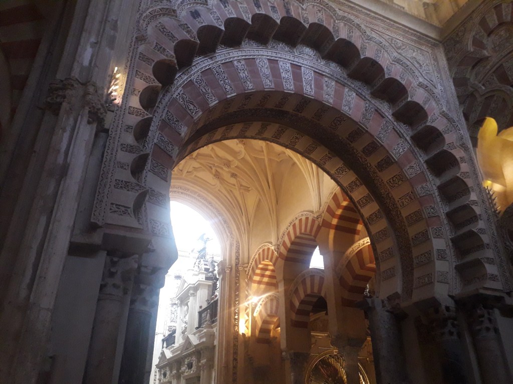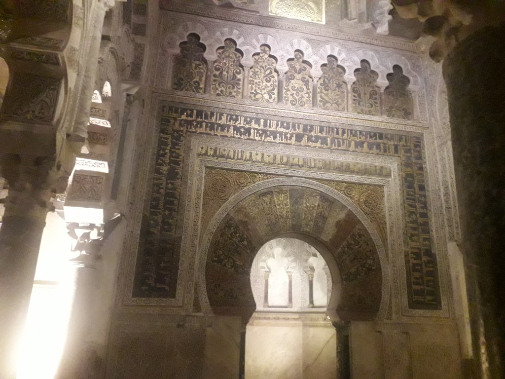 Comme vous l’avez remarqué, la religion chrétienne s’est approprié ce qui fut la troisième mosquée du monde par sa taille. 🕌 En effet, Cordoue était une ville califale. Elle était également l’agglomération la plus importante d’Europe à cette époque, forte d’un demi-million d’habitants. Voici quelques photos du chœur baroque de la cathédrale, où j’ai pu assister à un sacrifice humain en début de journée, comme je le fais chaque dimanche, lorsqu’un prêtre renouvelle la mort du Christ en consacrant le pain et le vin sur l’autel :
