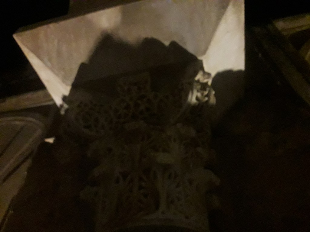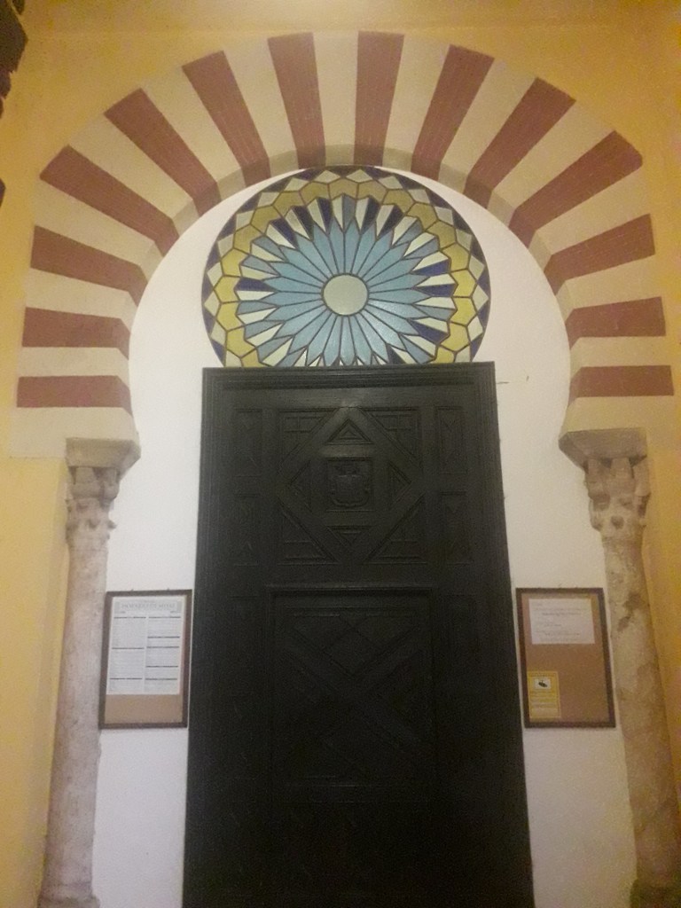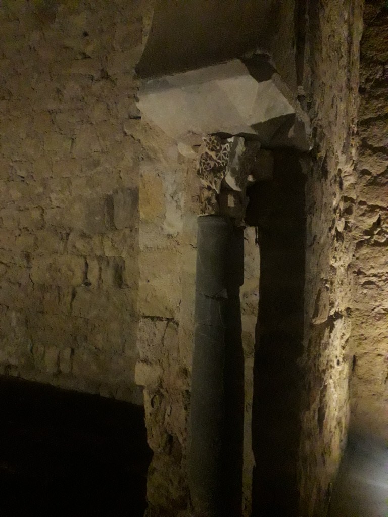 Pour revenir aux éléments propres à l’ancienne mosquée, voici deux clichés du mihrab. Cette niche se situe au milieu du mur de la qibla, qui est orienté vers La Mecque. 🕋 Ce pan indiquait aux fidèles comment se positionner lors de la prière. Le mihrab était l’endroit d’où prêchait le calife omeyyade chaque vendredi. Au niveau acoustique, tout était étudié pour qu’on l’entendît au mieux.