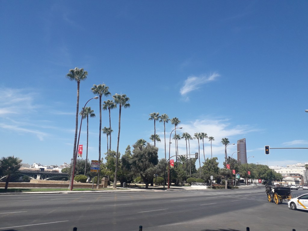 Le samedi 17 août, je me suis embarqué pour Séville, le chef-lieu de la communauté autonome d’Andalousie. 💃 J’avais déjà visité cette ville magnifique début février 2010, et j’avais été assez impressionné par le fait qu’il faisait 18°C et qu’on pouvait presque se mettre en T-shirt. Quatorze ans plus tard, malheureusement, on peut avoir des températures de ce type fin février dans la région de France où j’habite. 😢 Le dérèglement climatique est indéniable et nous sommes tous responsables de prendre soin de notre environnement. 🌱