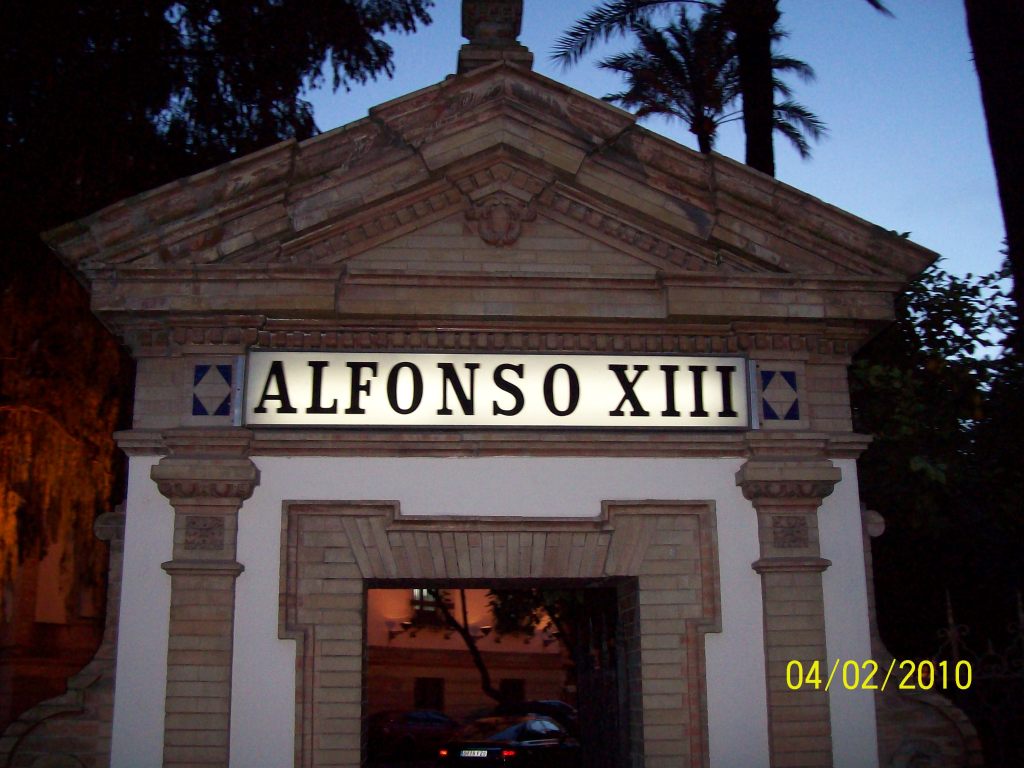 Dans le centre-ville se trouve également l’hôtel de luxe Alfonso XIII, en l’honneur du roi d’Espagne à l’époque de la Restauration (monarchie parlementaire qui commença en 1874 et prit fin avec la proclamation de la IIe république en 1931). 🤴 Alphonse XIII a commencé à régner en 1902. Veuillez trouver ci-après des photos de la bâtisse éponyme :