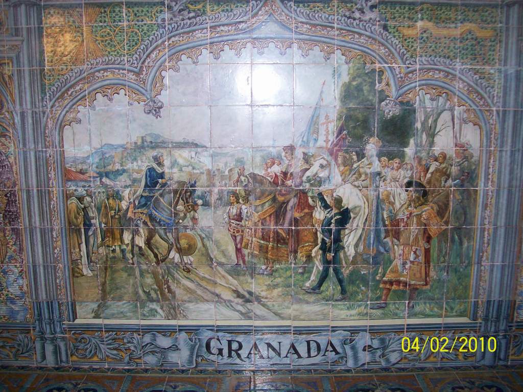 D’autres photos montrent de beaux éléments d’architecture sévillans, à l’instar de la Place d’Amérique et de la Place d’Espagne (avec une représentation du mariage des Rois catholiques à Valladolid) :