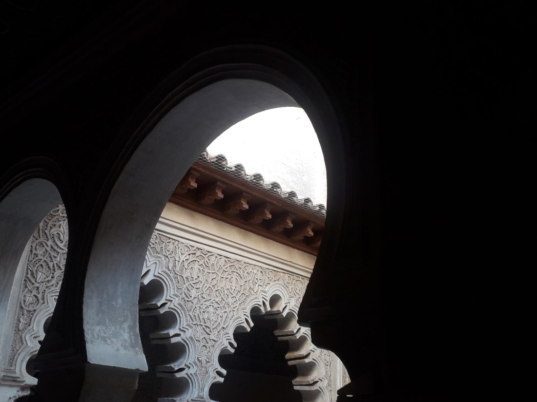 La suite de la visite nous a menés dans un magnifique patio, mudéjar lui aussi. Les arcs en fer à cheval datent de l’époque almohade. Les arcs polylobés sont également typiques de l’architecture hispano-musulmane. D’autres éléments, comme le carrelage au sol et les boiseries, datent seulement du XIXe siècle. Voici quelques photos de cet endroit magique :