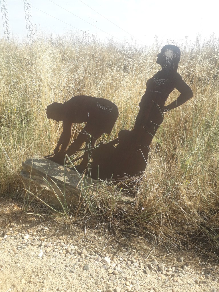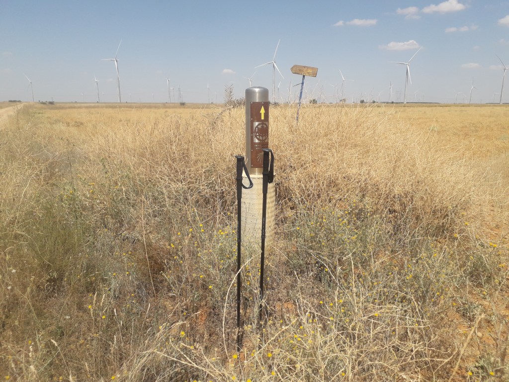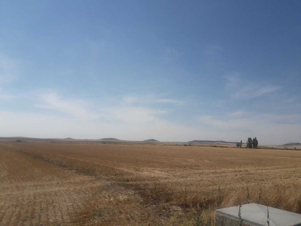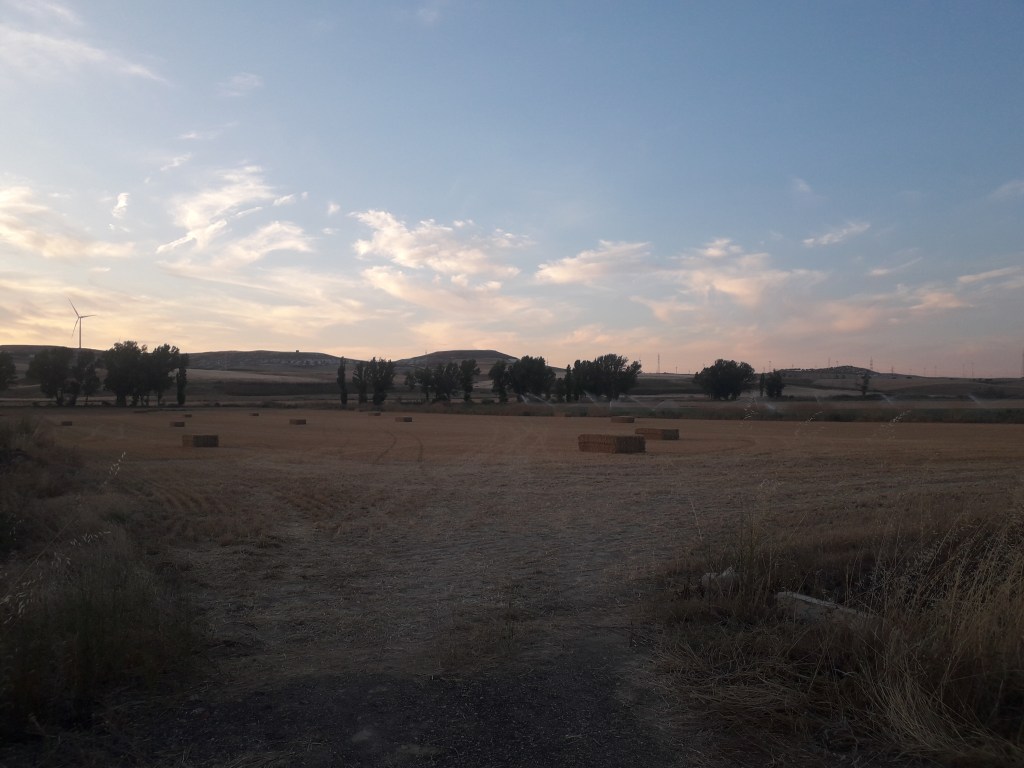 Parti plus tard que prévu de Saragosse (j’avais besoin de roupiller un peu), j’ai décidé de ne pas ouvrir le trajet à d’éventuels covoitureurs, pour différentes raisons. Au milieu des paysages tout aussi vallonnés et désertiques que la campagne vallisolétane, j’ai roulé la plupart du temps à 60 km/h, pour des raisons environnementales et budgétaires. Je me suis fait klaxonner deux fois, ce qui m’était peu arrivé depuis que j’ai franchi la frontière. Il faut dire que je n’ai pas encore pris le temps d’imprimer et d’afficher la version espagnole de mon écriteau « Écoconduite : doublez-moi ! », que j’ai placé sur la lunette arrière. Néanmoins, j’imagine que les automobilistes et camionneurs qui me suivent comprennent l’idée de la version française, d’autant plus que la police est en vert. Si ce message leur était vraiment hermétique, je me ferais certainement beaucoup plus klaxonner. 😅