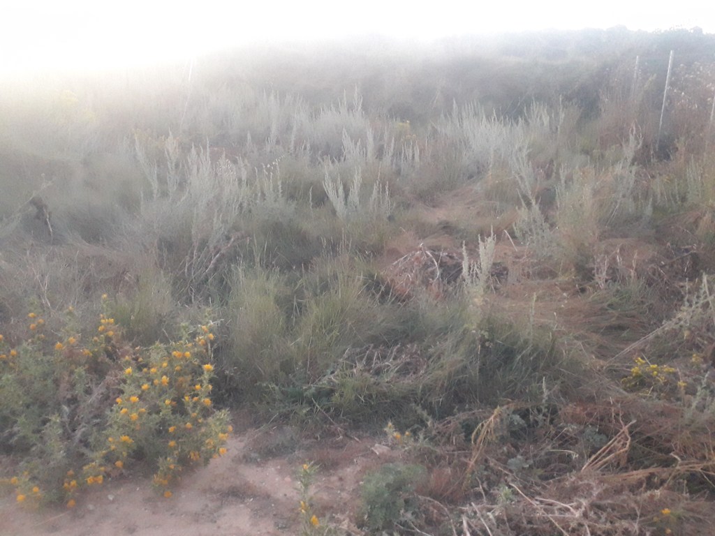 Un peu essoufflé par ma longue marche le soir d’un lendemain de soirée, j’ai regagné la maison par un autre chemin, suivant ce que disait le système de géolocalisation du Pentagone. J’ai longé un paysage de maquis qui, sous le soleil couchant, m’a assez intrigué pour que je prenne quelques photos :