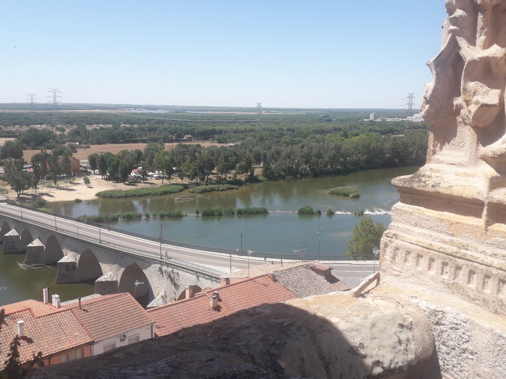 Après un saut de 24h à Valladolid, où j’ai pu revoir des amis de longue date, j’ai pris la route pour Saragosse, covoiturant Antonio et son fils Rodrigo. Nous avons longé le Douro et traversé la province de Soria, dont les paysages désertiques, vallonnés et calcaires m’ont époustouflé. 😮Antonio m’en a appris un peu plus sur la signalisation espagnole. En effet, j’avais remarqué depuis le Pays basque que certaines routes sont nommées par deux lettres originales, suivies d’un nombre. En fait, il s’agit de l’équivalent de nos départementales, mais, au lieu du D, on trouve les lettres qui identifient la province. Par exemple, les routes relevant de la compétence de la diputación de Valladolid commencent par VA, celles qui sont administrées par la province de Soria s’ouvrent avec les initiales SO, idem pour ZA dans la division administrative de Saragosse (Zaragoza), etc. Cela concerne notamment le périphérique de chaque chef-lieu.