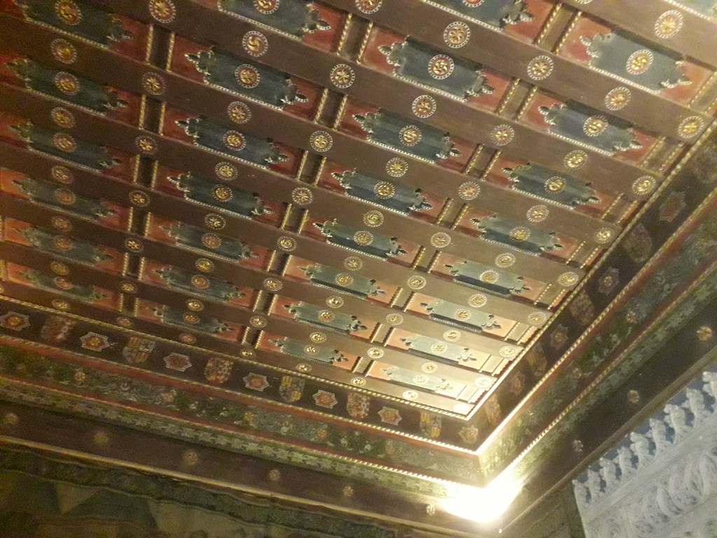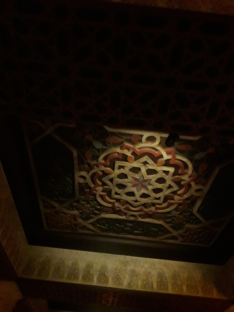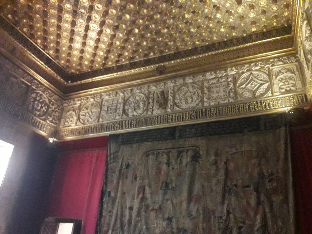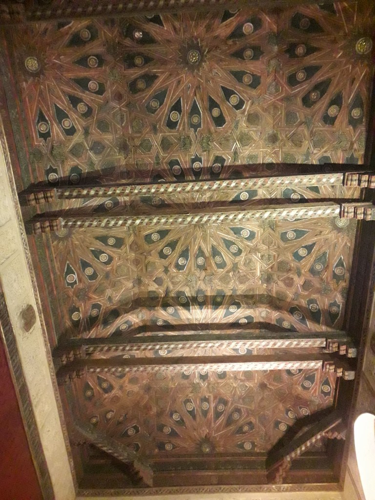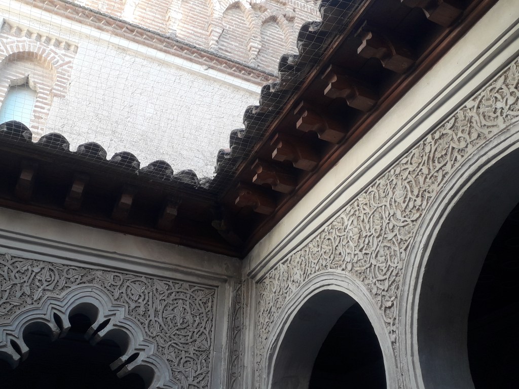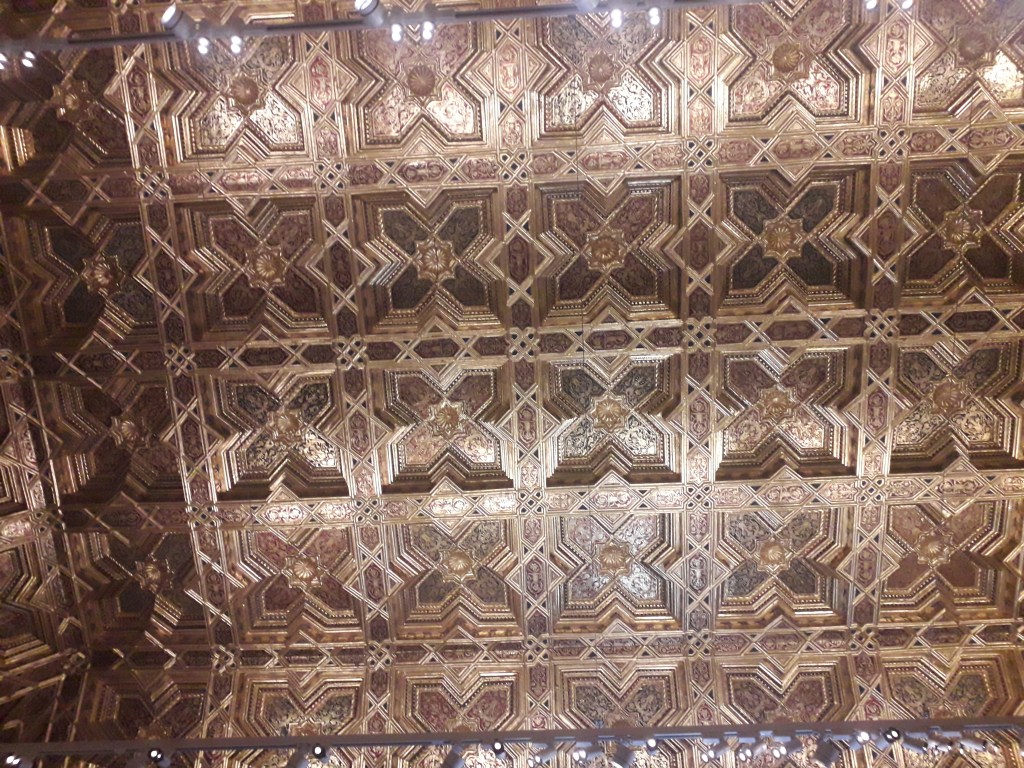 Dans l’après-midi, j’ai visité une tout autre merveille architecturale : le palais d’Aljafería. Riche de mille ans d’histoire, ce joyau de l’art hispano-musulman fut le siège de la taïfa de Saragosse, puis, après la Reconquête chrétienne, du royaume d’Aragon. ☪✝ À cette époque, des artisans arabo-musulmans restèrent librement sur leur terre d’origine et participèrent au développement architectural de ce complexe. Appelés mudéjares, ils développèrent un style de construction éponyme. Cette vidéo vous offre un aperçu de la cour centrale. Voici quelques clichés de l’intérieur et de l’extérieur de l’édifice :