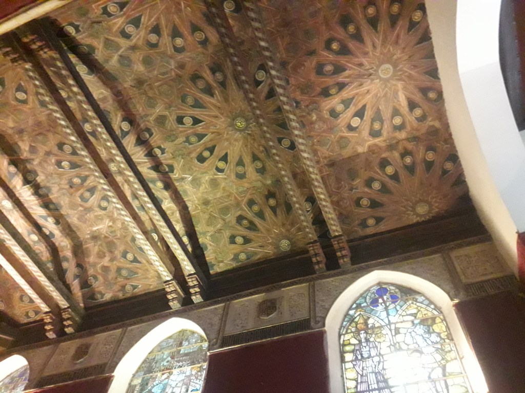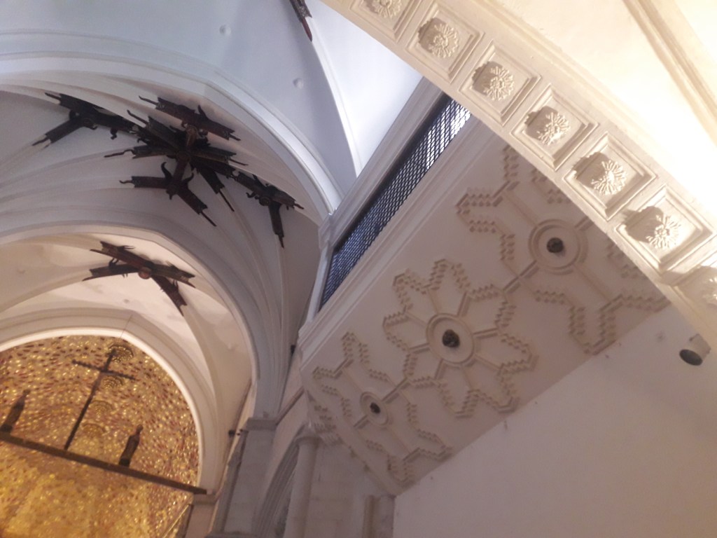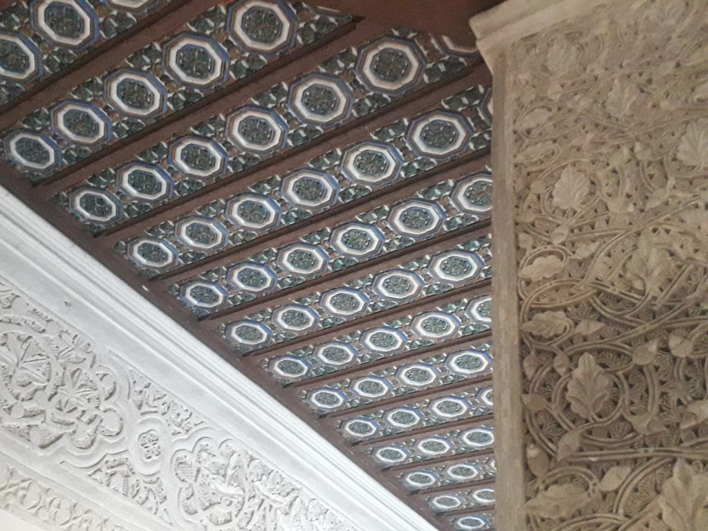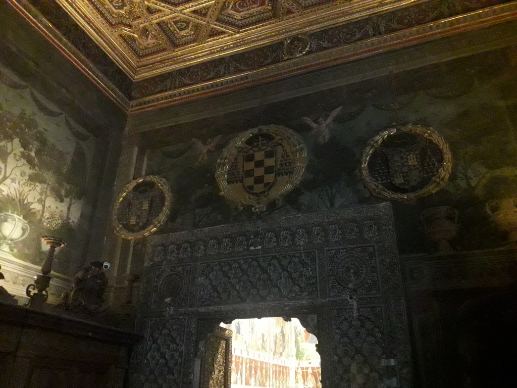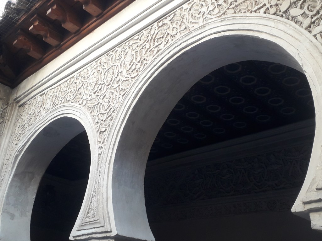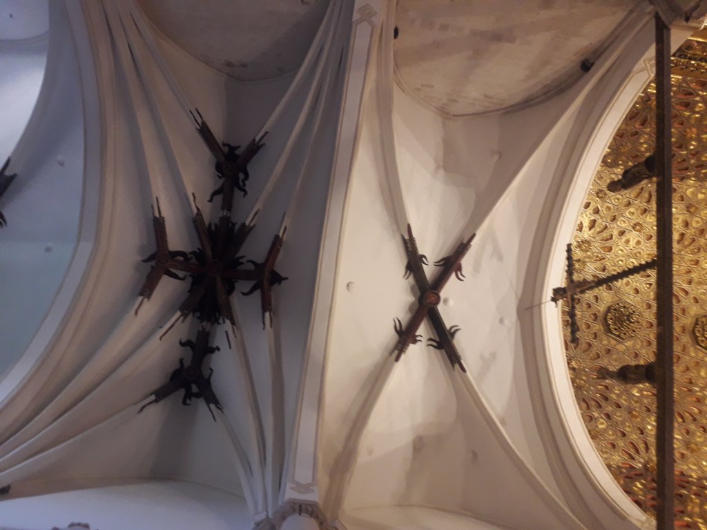 Dans l’après-midi, j’ai visité une tout autre merveille architecturale : le palais d’Aljafería. Riche de mille ans d’histoire, ce joyau de l’art hispano-musulman fut le siège de la taïfa de Saragosse, puis, après la Reconquête chrétienne, du royaume d’Aragon. ☪✝ À cette époque, des artisans arabo-musulmans restèrent librement sur leur terre d’origine et participèrent au développement architectural de ce complexe. Appelés mudéjares, ils développèrent un style de construction éponyme. Cette vidéo vous offre un aperçu de la cour centrale. Voici quelques clichés de l’intérieur et de l’extérieur de l’édifice :