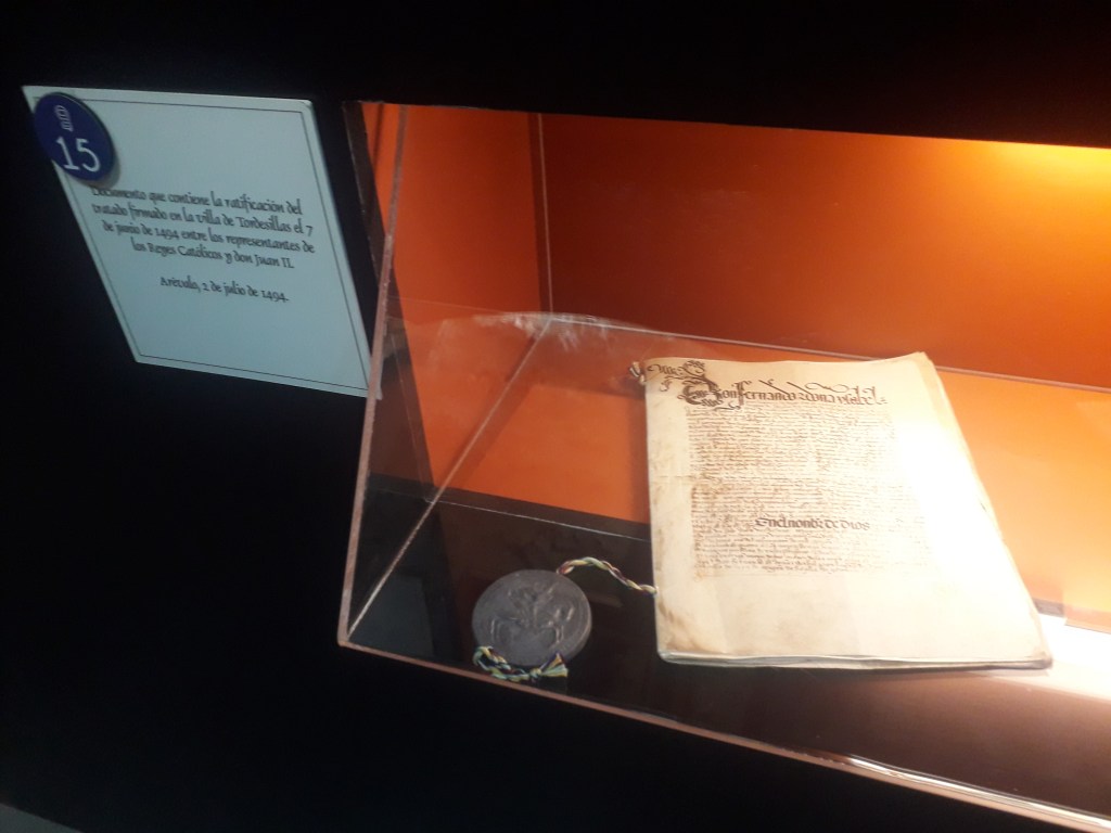Sur la façade de style plateresque qui fait face à la statue du frère Louis de León, j’ai soumis Mickaël à une tradition pluriséculaire liée à l’intégration des étudiants : trouver où se cache la grenouille parmi ce complexe de bas et de hauts-reliefs. 🐸 Après cette courte soirée d’intégration effectuée en milieu de journée, nous avons visité le musée de l’université. En mode déconnexion à ce moment-là, j’ai pu savourer sur place la beauté des bâtiment et l’intérêt historique des collections. La seule photo (prise par mon compagnon de voyage) que je vous partage est ce facsimilé d’une carte du détroit de Magellan, datant probablement du XVIIe siècle. Certains lecteurs et certaines lectrices bien spécifiques comprendront ce que cette image vient faire au sein de cet article, un certain nombre de lignes avant le récit de la visite de monuments édifiés à Barcelone entre 1888 et 1929… 😉