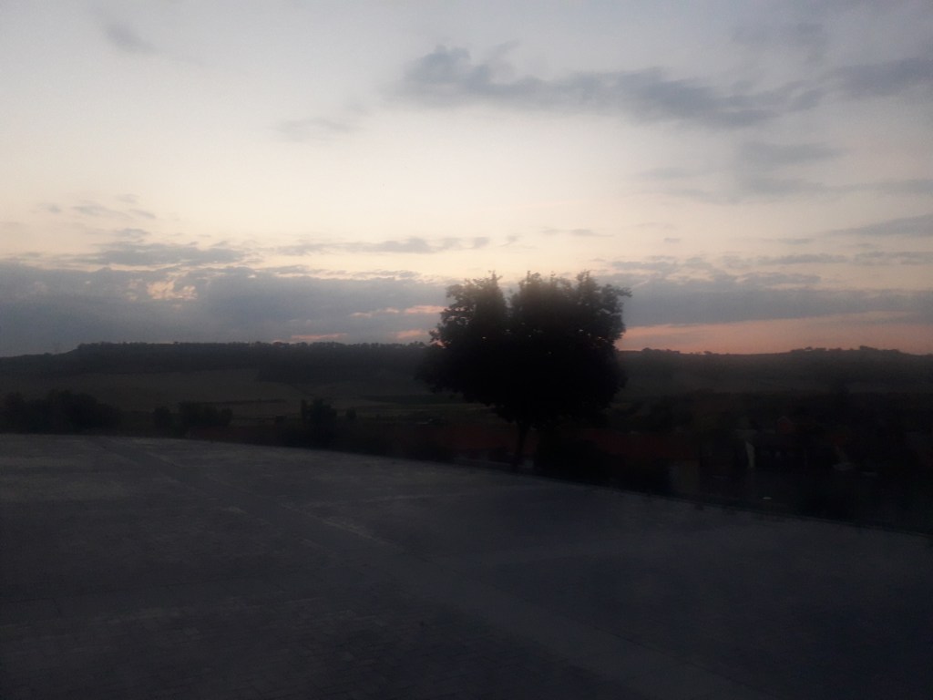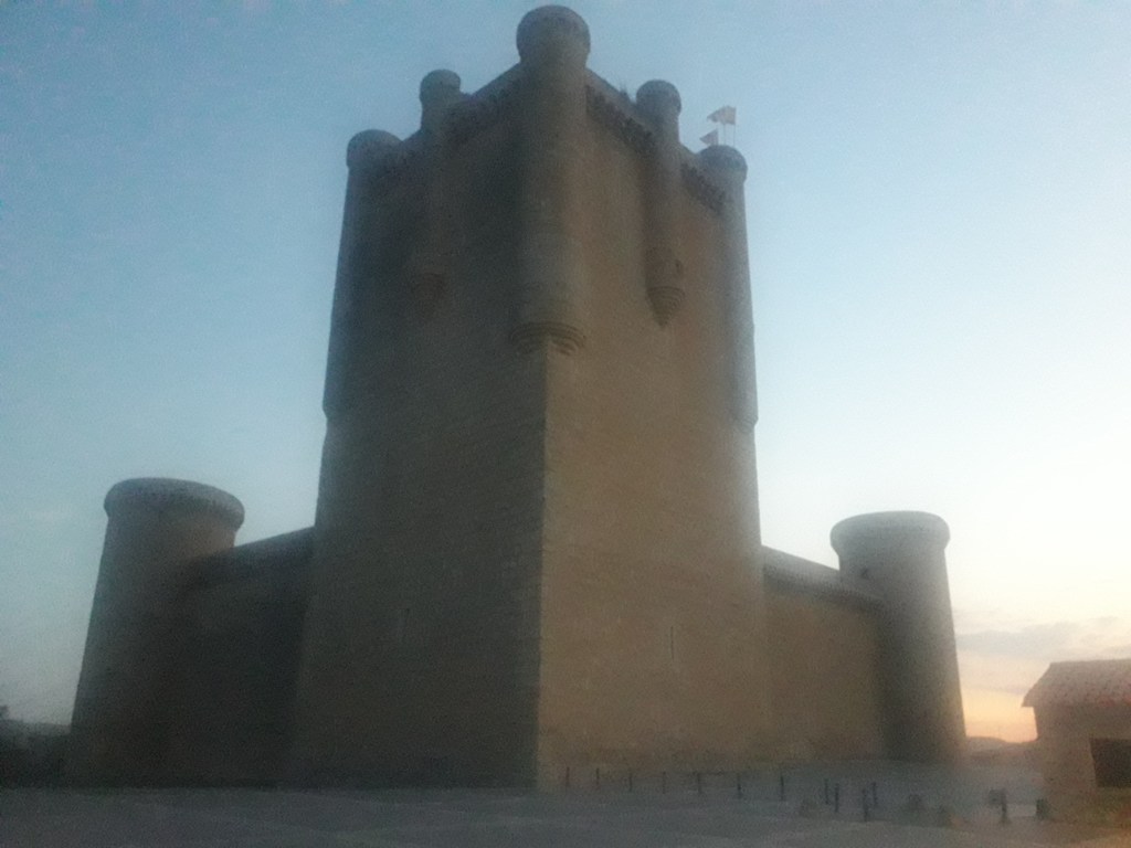 Peu après que nous avons passé le panneau « Aragón », il s’est mis à pleuvoir. Toute référence à un grand film du cinéma français ne serait que coïncidence… 😉 Le paysage était tout aussi beau, tandis que nous nous y enfoncions au coucher du soleil. Nous avons traversé un bourg nommé Borja. D’après Wikipédia (dont la page dédiée en français aurait pu être mieux traduite), cette localité était peuplée dès la période celtibère, connut quelques siècles plus tard une période hispano-arabe, puis fut le berceau des Borgia, une famille de papes pas très catholiques… Du fait de mon écoconduite radicale, nous sommes arrivés à destination à la tombée de la nuit. Demain, je visiterai certains monuments phares et vous en écrirai davantage.