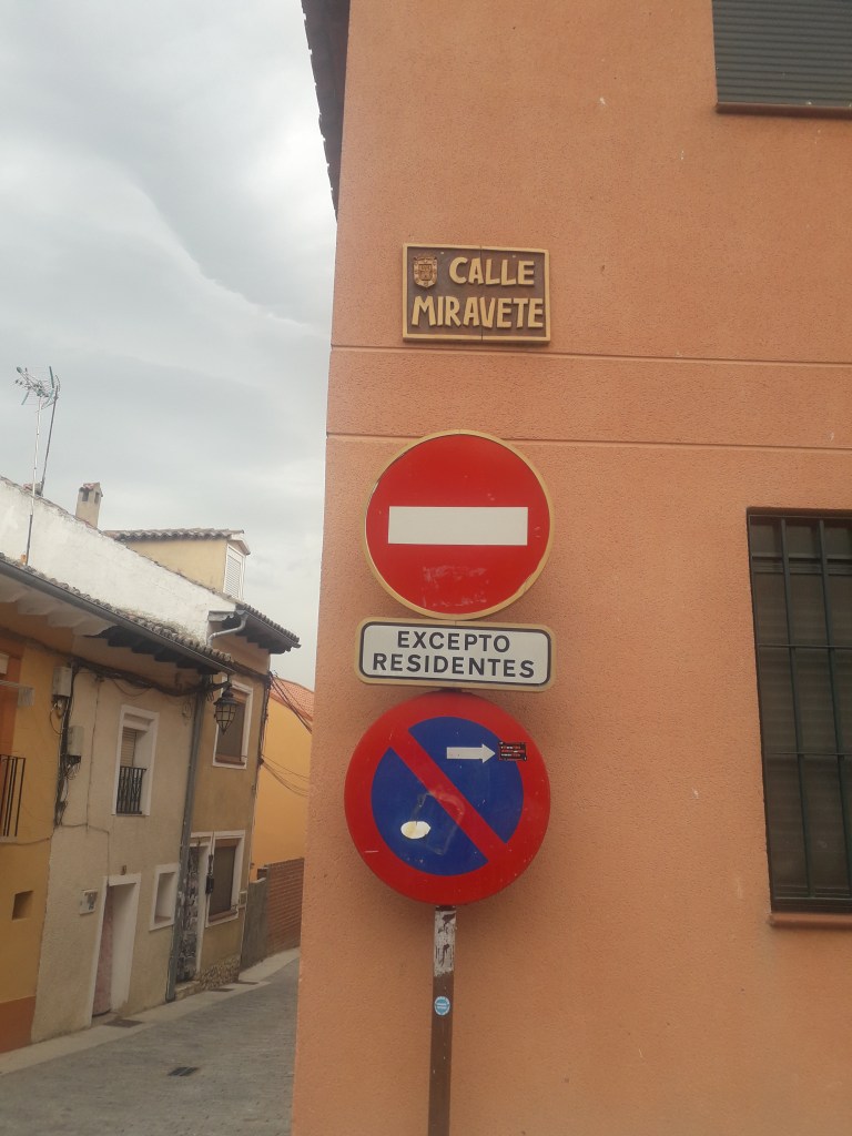 J’ai aussi remarqué que les limitations de vitesse sont souvent dix kilomètres/heure en dessous de la norme française. ⭕ L’autoroute est limitée à 120 (ça, je l’avais remarqué depuis longtemps), la quatre-voies à 100, les courbes et les périphéries à 60 et, dans certaines zones où il faut être prudent, on voit assez régulièrement un panneau « 40 ». Par ailleurs, j’ai très souvent vu le panneau « vitesse conseillée » (🔟), alors que celui-ci est extrêmement rare en France (du moins, dans la région plate où je réside). Cet affichage était très fréquent sur les routes sinueuses et montagneuses du Pays basque, mais je l’ai aussi vu dans le paysage légèrement vallonné de la Meseta.