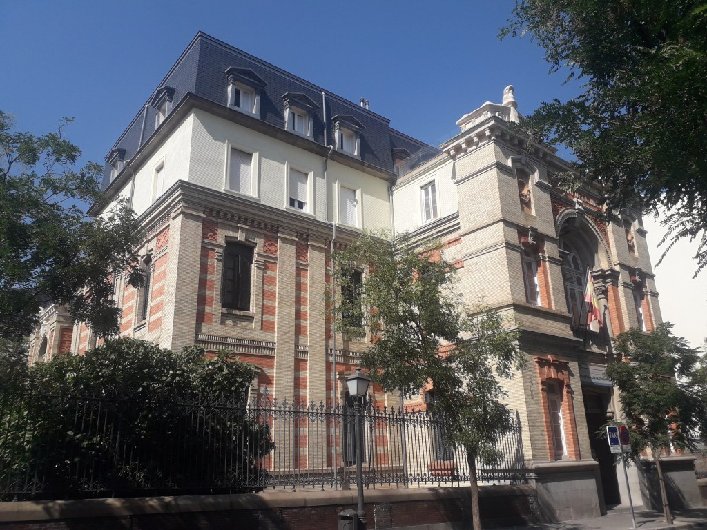 Ci-dessous, vous verrez un cliché d’une autre maison moderniste, de la même époque, non commentée par notre guide à l’ensemble du groupe. J’ai néanmoins demandé à Juan Pablo s’il avait des choses à me dire au sujet de cet édifice. Il s’agit d’un hôtel, construit à la même époque que les bâtisses présentées lors de la visite guidée. L’une des caractéristiques du modernisme est l’usage de matériaux très divers. Entre autres, la brique est une matière pauvre, utilisée pour les constructions modestes. Que dire alors de l’Alhambra, somptueux palais des derniers princes arabo-musulmans de la Péninsule ? ⛲ Eh bien, justement, la dynastie des Nasrides avaient bien conscience que le royaume de Grenade n’en avait plus pour longtemps. Au lieu de bâtir un palais en marbre, que les conquérants chrétiens auraient sans doute détruit à leur arrivée, ils l’édifièrent en briques et en stuc. Cependant, époustouflés par la beauté du château rouge, les Rois catholiques le laissèrent sur pied. Pour faire le lien entre Al-Andalus et la Barcelone d’il y a un gros siècle, Juan Pablo m’a précisé que le modernisme puisait notamment dans l’orientalisme, s’inspirant, entre autres, des civilisations chinoise, indienne et arabe. Voici un cliché de l’édifice en question :