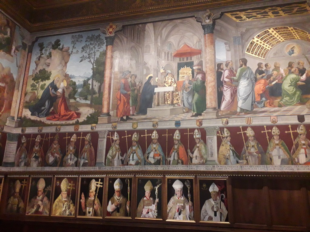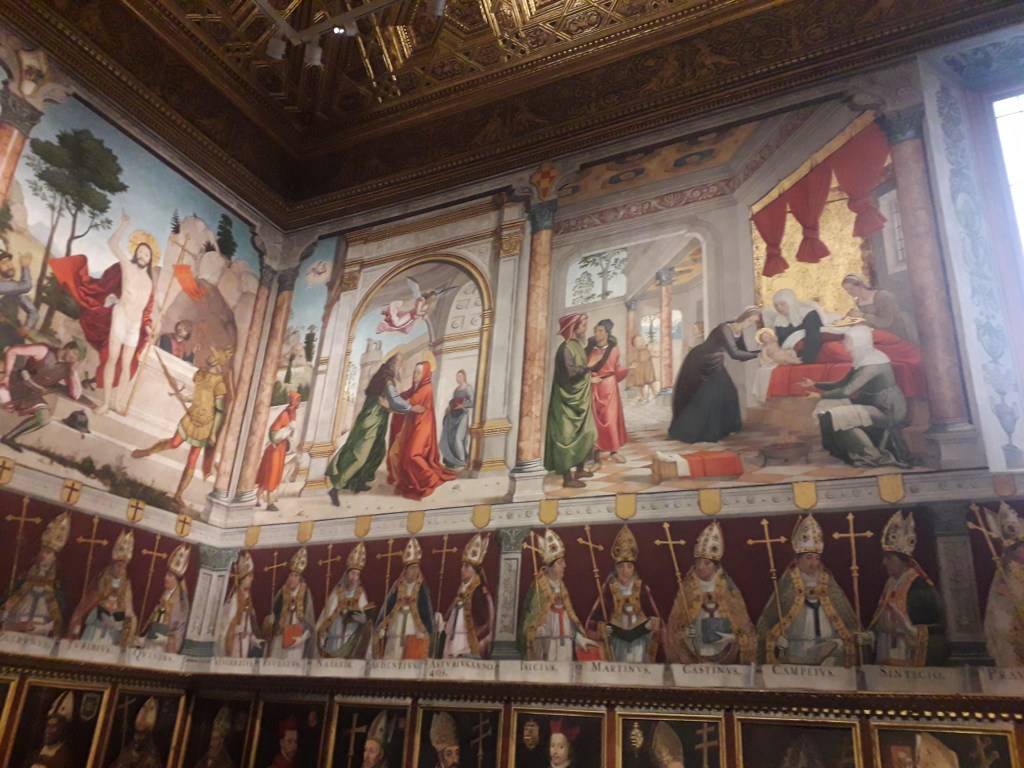 Dans cet édifice religieux, aucun noble n’est enseveli. Les seuls mécènes honorés sont les orfèvres. Voici les armes de leur corporation (gremio) :