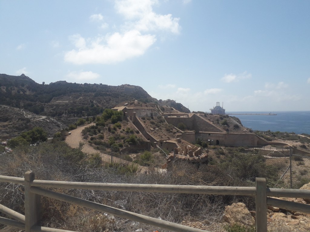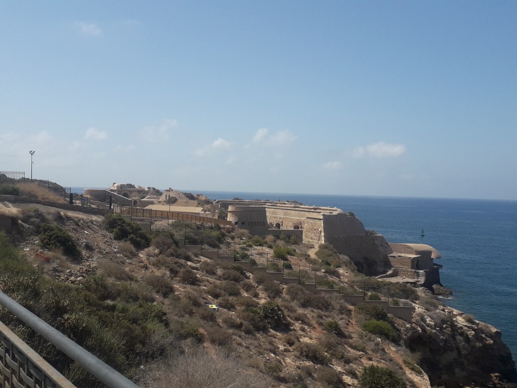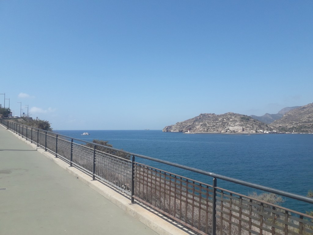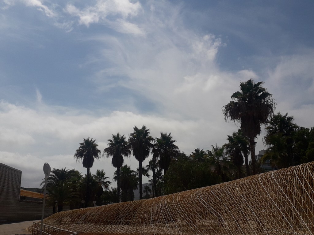 Après m’être restauré et avoir pris congé de mon compagnon, qui était sur le départ pour Dublin, j’ai cheminé jusqu’au Parc Güell. Devant poireauter une heure avant de pouvoir rentrer, je me suis rendu compte que j’avais faim. Ne voulant pas céder aux arnaques des marchands de chucherías qui bordent l’entrée du célèbre jardin, je suis monté vers le quartier populaire qui surplombe cette zone, afin d’y trouver un bar barato. Lors de mon ascension, j’ai pu capturer cette vue sur la Méditerranée, devancée par la Sagrada Família et un building aux allures londoniennes que les Barcelonais surnomment, paraît-il, « le Suppositoire ». Attablé dans un bar-restaurant devant lequel stationne une voiture des Mossos d’esquadra, je commande un sandwich thon-crudités, effectivement à un prix très abordable, et je vérifie où je me trouve. Apparemment, je suis à l’orée du Mont Carmel, le quartier mal famé d’où vient le personnage principal du roman Teresa l’après-midi / Últimas tardes con Teresa, de Juan Marsé.