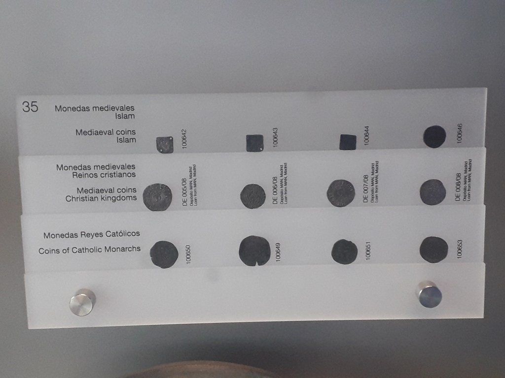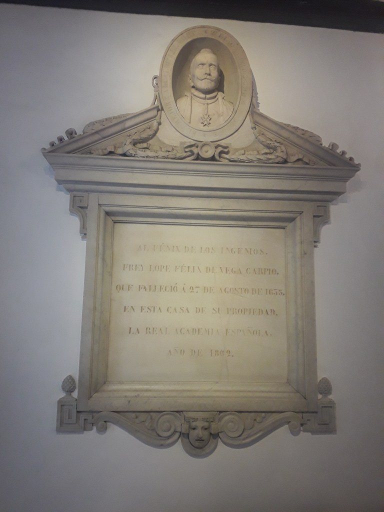 Après le déjeuner, nous avons scruté les médaillons de la Plaza Mayor, qui sont à l’effigie des grands personnages historiques espagnols. Les rois, reines et autres chefs d’État sont de loin les plus nombreux. 👑 Depuis ma dernière visite (fin 2009), le bas-relief représentant Franco a été retiré. Lorsque ce dictateur siégeait aux côtés d’Alphonse X le Sage, des Rois Catholiques, de Charles Quint et de Philippe II, un anonyme avait customisé son portrait en y ajoutant une moustache qui faisait Führer. Actuellement, des allégories personnifient la Première et la Seconde Républiques, tandis que Jean de Bourbon, le père de Juan Carlos Ier, a lui aussi droit à son médaillon, bien qu’il n’ait jamais régné. En effet, il était ouvertement trop démocrate aux yeux du Caudillo, qui a désigné son fils comme successeur, sans se douter que celui qui n’ouvrait pas la bouche et semblait tout acquiescer était loin d’être simplet ; il avait des idées de Transition derrière la tête… 🗳 Outre les politiciens, sont honorés quelques écrivains, à l’instar de fray Luis de León, Cervantès et Unamuno. Entre autres personnages clés, un médaillon représente Antonio de Nebrija, qui publia en 1492 la toute première grammaire de la langue espagnole. 🇪🇸